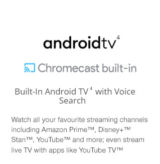 Android TV offers thousands of movies, shows and games from Google Play, Amazon Prime Video, YouTube and other favourite apps4. Enjoy dynamic audio and 3D surround sound with sound by YAMAHA, which can be used with or without a visual display by simply selecting the visual display to mute and can also connect via Bluetooth to use as a standalone speaker.